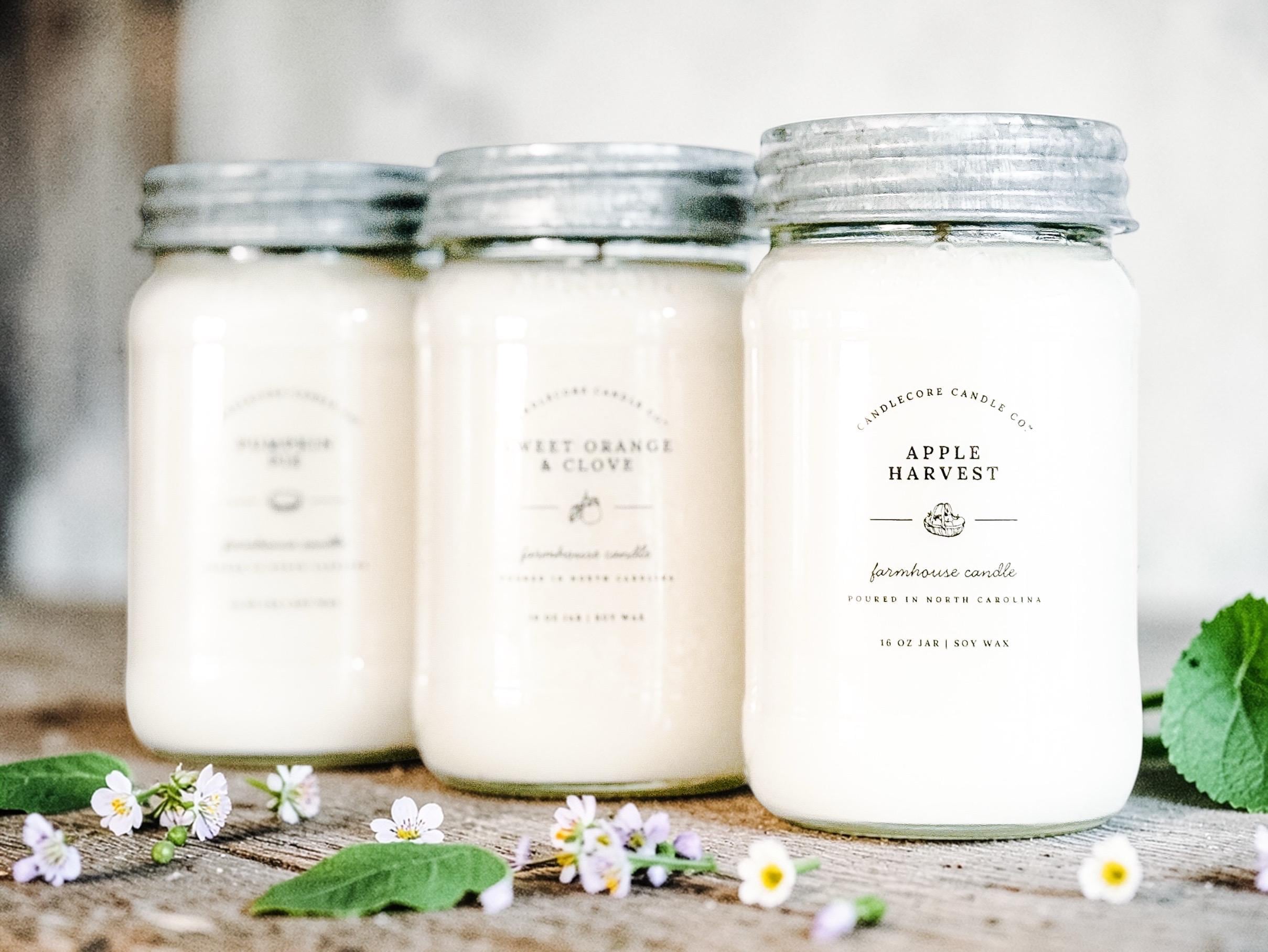 🫶Our farmhouse candles are made to order by our family on our small organic farm in Durham, North Carolina. Each 100% soy wax candle is hand poured into an 8 oz or 16 oz vintage-style mason jar and topped with a vintage reproduction galvanized metal lid.